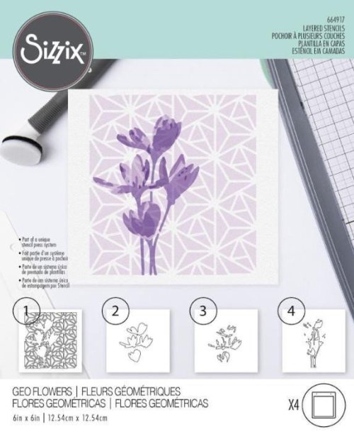 SIZZIX Plastová šablóna - vrstvená geometria a kvetina 4 ks