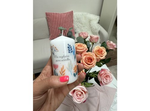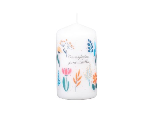 Originálne dekorovaná sviečka s jemnými maľovanými kvetmi a slovenským venovaním „Pre učiteľku“. Skvelá voľba ako drobný, ale srdečný darček ku Dňu učiteľov, vysvedčeniu alebo na rozlúčku. Sviečka je decentnou dekoráciou, ktorá zároveň poteší.