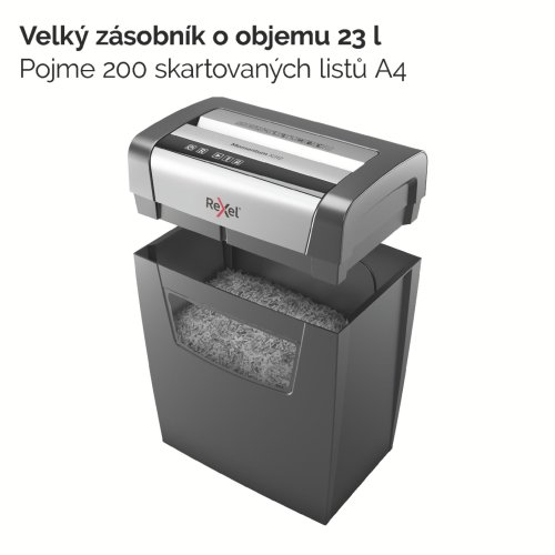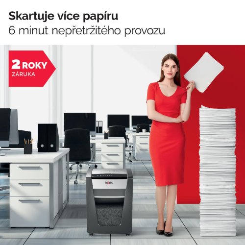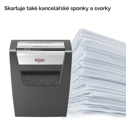 • Nezastaviteľná skartovačka! Rexel Momentum X312 skartuje až 12 listov naraz a vydrží v nepretržitom chode 6 minút, vhodná na domáce použitie