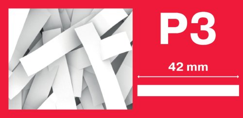 • Krížový rez na úrovni zabezpečenia P3 reže papier na časti o veľkosti 5x42 mm
