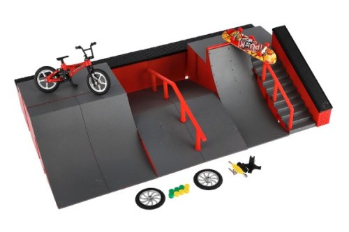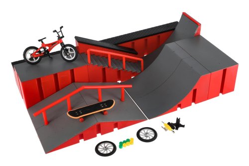 Užite si zábavu s veľkou sadou na fingerboarding! Set obsahuje skateboard, bicykel a super rampu pre triky. Prispôsobiteľný vďaka skrutkovacím komponentom.