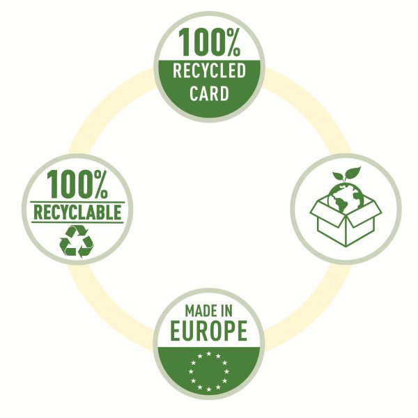 • Obal je 100% recyklovaný a 100% recyklovateľný bez obsahu plastov