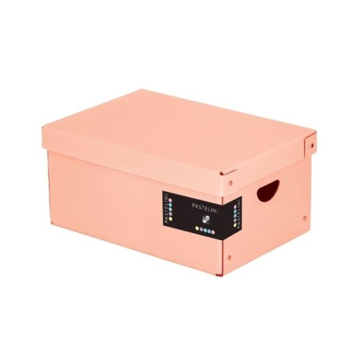 Lamino krabica s vekom a výrezom na úchytky pre ľahšiu manipuláciu. Vhodná na uchovanie rôznych predmetov od dokumentov až po hračky.