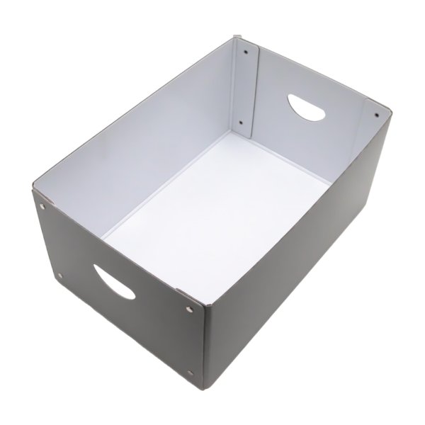 Krabica je opatrená vekom a výrezmi - úchytkami pre ľahšiu manipuláciu