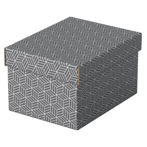 • Súprava troch malých lepenkových úložných boxov s moderným a štýlovým geometrickým dizajnom