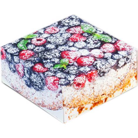 Menšia krabička z potlačeného papiera na prenášanie zákuskov.