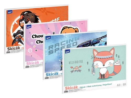 POUŽITIE: <br> na maľovanie ako ceruzkou, pastelkami, uhlom, vodovými i temperovými farbami <br> <br> Titulná strana je opatrená 4 motívmi (futbal, smajlíci, mačka, jednorožec) <br> <br> Formát: A3 <br> Gramáž: 190 g <br> Počet listov: