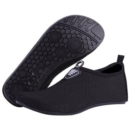 Obuv do vody Merco Skin sú pohodlné a ľahké topánky, ktoré využijete pri bazéne, na pláži, na paddleboarde, ale aj pri cvičení jogy apod. Topánky sú vyrobené z elastického mikrovlákna s phylonovou medzipodrážkou a gumovou podrážkou, ktorá minimalizuje riziko pošmyknutia na klzkom povrchu či zranenie pri šliapnutí na ostrý predmet . Penov á stielka poskytuje väčšie pohodlie pri každom kroku. Či už mierite na plavecký tréning, na dovolenku k moru alebo len hľadáte pohodlnú topánku na cvičenie jogy, Merco Skin sú to pravé! Veľkosti: S: 34 - 35 EU M: 36 - 37 EU L: 38 - 39 EU XL: 40 - 41 EU XXL: 42 - 43 EU XXXL: 44 - 45 EU Uvedené hodnoty sú len orientačné as ohľadom na konkrétny tvar nohy sa môže vhodná veľkosť líšiť!
