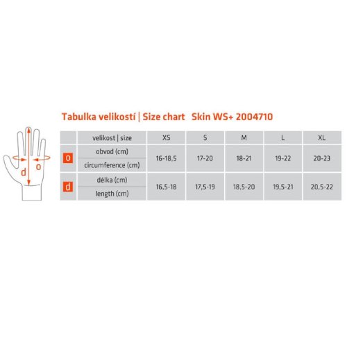 Dlhoprsté športové rukavice ETAPE Skin WS+ sú vyrobené z príjemného materiálu SoftShell s funkčnou membránou a zateplením na použitie v teplotnom rozmedzí -5 až 10 °C. SoftShell je elastický materiál odolný vetru a vode. Rukavice sú vybavené technológiou SmartTouch, vďaka ktorej je možné ovládať displeje mobilných telefónov, tabletov, MP3 prehrávačov, kamier, fotoaparátov alebo navigácií. Môžete teda pracovať s vašim zariadením s dotykovým displejom v akomkoľvek prostredí bez nutnosti dávať dole rukavice. - materiál SoftShell s membránou a zateplením - materiál ThermoFit so zateplením (dlaň) - ovládanie dotykového displeja SmartTouch - protišmykový silikón na dlani - fleece na palci na utieranie potu - predĺžené elastické zápästie - reflexné bezpečnostné prvky - teplotný rozsah: -5 až 10 °C - materiál: 35% polyester + 45 polyamid + 15% elastane + 5% polyuretán