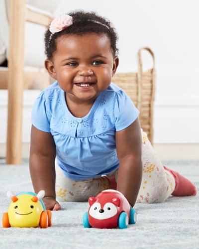 Roztomilé zvieratko na kolieskach plné pestrých farieb a pútavých textúr podporí zábavné dobrodružstvá bábätka pri plazení. Perfektná veľkosť pre malé ručičky. Stačí autíčko potiahnuť dozadu a pustiť a autíčko sa rozbehne.