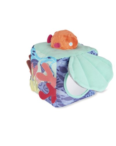 Ponorte sa do nekonečnej zábavy! Naša mäkká kocka aktivít inšpirovaná morom, ktorá je plná viacerých mäkkých textúr, zvukov šušťania a ďalších vecí, ktoré môže dieťa preskúmať, podporuje viaczmyslové skúmanie počas hry. Obsahuje rybiu hrkálku, pokrčenú škrupinu so skrytým detským zrkadlom, hračku na hryzenie rýb a mnoho ďalších oceánskych pokladov, ktoré môžete objaviť.