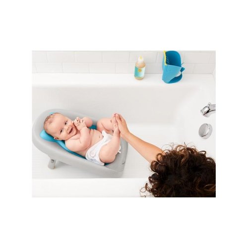 Ponúka tri spôsoby použitia - na pracovnej doske, v umývadle alebo vo vani. Pre pohodlie dieťatka má dva rôzne sklony polohy. Šikovná zátka na reguláciu vody umožňuje prispôsobenie hladiny a prietoku vody, zatiaľ čo tvarovaný dizajn lehátka kolíše dieťatko. Uskladnenie je veľmi jednoduché - zaveste ho pomocou vstavaného háku alebo ho zložte na plocho.