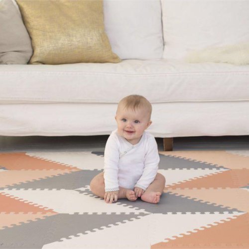 Penové puzzle na hranie sú navrhnuté tak, aby sa Vaše dieťatko cítilo pohodlne a spokojne pri svojich hrách a zároveň aby dopĺňali dizajn Vášho domova. Vďaka trojuholníkovému tvaru sa penové časti spolu jednoducho spoja a tvoria rôzne vzory. Rovnako môžete vytvoriť to najdokonalejšie rozloženie penových častí do podložky a prispôsobiť ju hraciemu priestoru dieťatka. Mäkkosť penových dielov izoluje a tlmí nárazy, čím zaisťuje Vášmu dieťatku maximálne pohodlie a bezpečnosť pri hre.