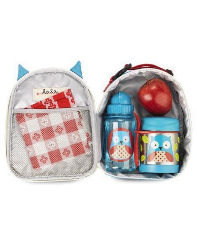 Krásny batôžtek v štýle SKIP HOP. Priestranný, izolovaný batôžtek udržuje jedlo & pitie v chlade. Pomocou vrchnej pracky je možné batôžtek pripnúť na inú tašku alebo batôžek ek.Vnútorné sieťované vrecko na drobné nevyhnutnosti. Vnútri praktická menovka. Batôžtek je navyše doplnený o krásny detail na zipse.