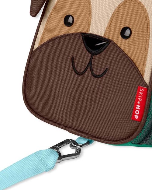 Krásny batôžtek v štýle Skip Hop s bezpečnostným pásikom. Opasok je možné podľa potreby odopnúť/pripnúť. Batôžtek má polstrované nastaviteľné ramenné popruhy, ucho na prenášanie, hlavné vrecko na zips, sieťované bočné vrecko na pitíčko a menovku, aby sa batôžtek nestratil. Jednoduchá údržba. Obsahuje 0% BPA, bez ftalátov.