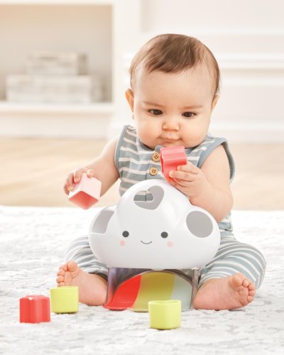 Náš roztomilý kamarát mráčik je viac než len triedič tvarov, ale aj zoznamuje dieťa s emóciami, počasím a farbami. Obsahuje 10 ľahko uchopiteľných blokov a každý z 5 rôznych tvarov znázorňuje emócie a zodpovedajúce počasie, ako napríklad šťastné/slnečné, smutné/daždivé a ďalšie. Detičky si zamilujú hľadanie dokonalej farby pre každý blok a budú sledovať, ako sa posúva po dúhe!