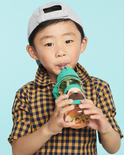 Krásna a praktická fľaštička z kolekcie ZOO, so slamkou, zatváracím viečkom, praktickým pásikom na suchý zips.