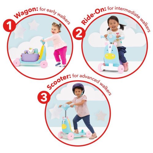 Roztomilé farebné odrážadlo v motíve zvieratka z kolekcie Zoo bolo navrhnuté tak, aby rástlo s Vaším dieťatkom v troch etapách. Odrážadlo ponúka zábavný spôsob, ako povzbudiť rozvoj motorických zručností, rovnováhu a koordináciu dieťatka počas hrania. Prvá etapa je určená pre začínajúcich chodcov. Motivuje najmenších k tomu, aby tlačili alebo tiahli odrážadlo, ktoré je vo forme vozíka. Skvelé miesto pre obľúbené hračky. V druhej etape sa úložný vozík zmení na sedadlo a stáva sa z neho funkčné odrážadlo. Ste pripravení na tretiu etapu? Stačí vybrať sedadlo a vytiahnuť nastaviteľnú rukoväť pre Vaše dieťatko. Jazda na kolobežke môže začať. Zábavu znásobí tlačidlo na prednej strane pre svetlomety, melódie a rôzne zvukové efekty.