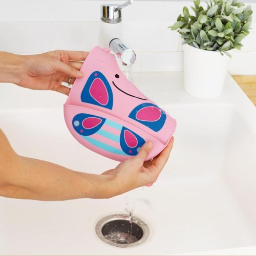 Silikónový podbradník Skip Hop z kolekcie Zoo v tvare zvieratka. Podbradník zachytí padajúce jedlo od nezbedných jedákov.