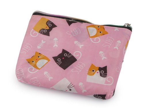 Skladacia nákupná taška so zipsom 39x40 cm - ružová detská mačka