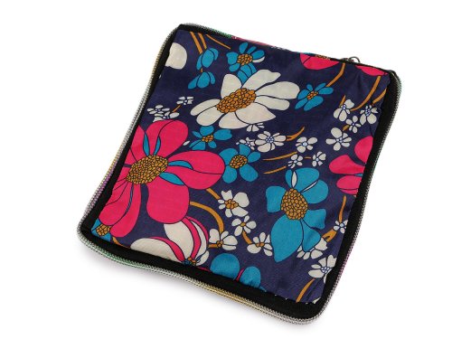 Skladacia taška je praktickým doplnkom vašej kabelky. V prípade väčšieho nákupu ju jednoducho vytiahnete a rozložíte. Taška je kvalitná a pevná, vo vnútri pogumovaná, vďaka materiálu aj jednoduchá na údržbu. Zapína sa na zips. Má dve pevné uši a široké dno. Na prednej strane má dve väčšie vrecká. Taška nemá obal, vďaka dômyselných zipsov pri dne sa zapína sama do seba.