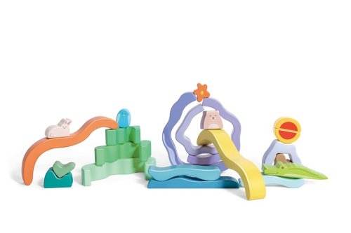 Farebná súprava nepravidelných blokov s tematikou prírody a zvierat. Deti môžu skladať, triediť alebo vkladať diely rôznymi spôsobmi. Zatiaľ čo niektoré možnosti skladania sa zameriavajú na rozpoznávanie farieb, iné pomáhajú budovať ich zmysel pre rovnováhu a koordináciu. Táto sada blokov obsahuje 22 farebných dielikov, ktoré zahŕňajú malebné stromy a hory a dokonca aj zvieracie postavy, ako je medveď, zajačik a krokodíl. Rozmer balenia: 26x4x24 cm. Vek 2+