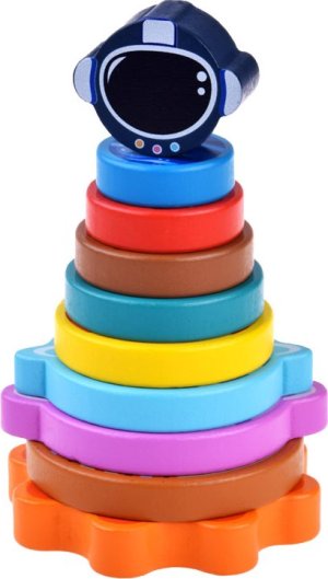 Vzdelávacia drevená pyramída je ideálna hračka pre rozvoj manuálnych zručností dieťaťa. Úlohou je poskladať disky na základňu od najväčšieho po najmenšie. Pyramídu zakončuje dielik v tvare helmy astronauta.