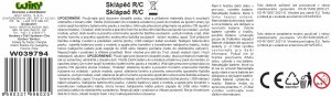 Sklápač RC na diaľkové ovládanie. Rozmery 19,5x10,5x13,5 cm. Frekvencia 40MHz. Dosah 15 m. Tlačidlá na ovládači - zdvíhanie a pokladanie úložnej plochy. Svetelné efekty. 3.7V 500mAh batériový pack do sklápača súčastí, 2xAA do ovládača nie sú súčasťou. USB kábel súčasťou. Prepínač ON/OFF na spodnej strane sklápača.