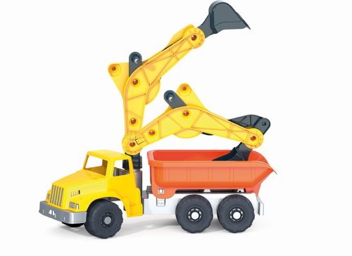 Obrie plastové auto nakladač s podkopovou lyžicou s ručným ovládaním v hnedej ekologickej krabici. Vyrobené z kvalitných plastov v Taliansku. Nosnosť vozidla max 100 kg. Rozmery balenia: 77 x 35 x 48 cm (dx š xv). Váha: 4,35 kg. Odporúčaný vek od 36 mesiacov. Výrobca, talianska firma Androni Giocattoli sídliaca neďaleko Milána, sa špecializuje na výrobu plastových hračiek na piesok a záhradu a tiež stavebníc UNICO Plus už od roku 1974. Jej mottom je heslo: Androni Toys: Kvalita vyrobená v Taliansku. Používané plasty sú pevné, ale zároveň pružné a pri bežnom hraní nedochádza k ich praskaniu. Vydržia aj väčšiu záťaž a preto sú výrobky vhodné aj do škôlok, kde takmer denne prechádzajú zaťažkávacou skúškou.