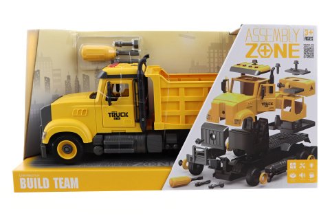 Veľká podarená skrutkovacia sklápačka. Napájanie na 3 AG13 batérie, ktoré sú súčasťou balenia. Auto má na streche 4 tlačidlá s funkciami-starkotanie, trúbenie, pípanie pri cúvaní a melódie. Skrutkovač je súčasťou balenia. Dvere sú otvárateľné, sklápanie fuknčné. Materiál plast. Balené v otvorenej krabici. Rozmery balenia cca 41x22x13 cm. Rozmery auta 37x14x11 cm. Vek 3+