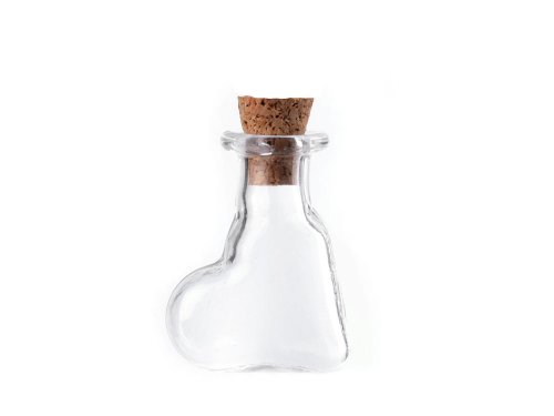 Malé sklenené fľaštičky sú vhodné na výrobu magických šperkov. Môžete ich naplniť drobnými korálkami, glitrami, jemným farebným pieskom, úlomkami minerálov, kamienkov a pod. Po naplnení odporúčame korkovú zátku do hrdla vlepiť, aby sa pri nosení fľaštičky samovoľne neotvorili. Zátky u fľaštičiek č.1 - 3 majú kovové očko, vám zostáva len zvoliť návlekový materiál - retiazku, šnúrku alebo kožu. Zátky u fľaštičiek č.4 - 6 sú bez očka. Šnúrku alebo kožu môžete priviazať okolo hrdla. Náš tip: Do fľaštičky môžete vložiť malú zrolovanú papierovú ruličku s odkazom alebo prianím. Fľaštička č.1 a 4: vnútorný priemer hrdla je 5,5 mm. Výška samotného skla je 25 mm. Vonkajší priemer banky je 15 mm. Objem je 1,5 ml. Fľaštička č.2 a 5: vnútorný priemer hrdla je 5,5 mm. Výška samotného skla je 25 mm. Šírka hviezdy je 21 mm. Objem je 2 ml. Fľaštička č.3 a 6: vnútorný priemer hrdla je 5,4 mm. Výška samotného skla je 27 mm. Šírka srdca je 20 mm. Objem je 1,5 ml.