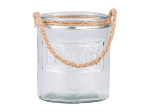 Tento väčší variant sklenenej lampy (150 × 170 mm) v sebe spája jednoduchosť číreho skla s prírodným lanom na zavesenie. Perfektná ako závesná dekorácia do obývacej izby, zimnej záhrady či na terasu. Vhodná na sviečku alebo drobnú LED reťaz. Vytvára hrejivú a upokojujúcu atmosféru.
