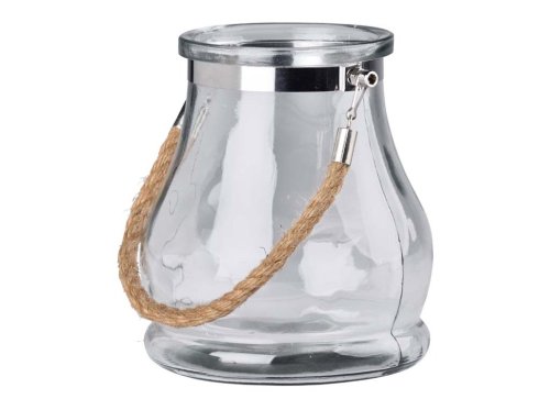 Táto výraznejšia sklenená lampa (160 × 180 mm) vynikne ako dominantný prvok vo vašej dekorácii. Číre sklo a záves z prírodného lana umožňujú ľahké zavesenie kdekoľvek – vo vnútri aj vonku. Vhodná pre väčšiu sviečku alebo drobnú svetelnú reťaz. Skvelá na vytvorenie hrejivej atmosféry v obývacej izbe, na verande alebo počas letných večerov na záhrade.