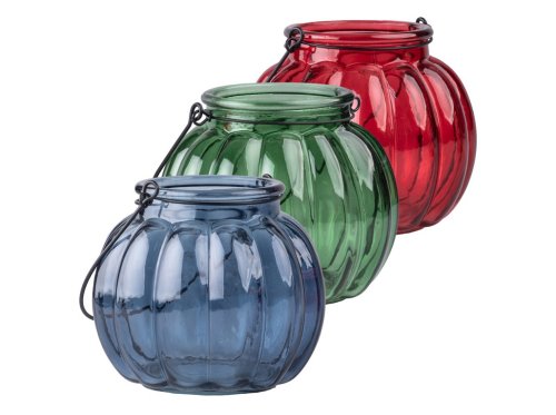 Táto sklenená lampáš v mixe farieb (červená, zelená, modrá) je praktickým a dekoratívnym doplnkom pre interiér aj exteriér. Vytvára útulnú atmosféru a je vhodná na umiestnenie čajových sviečok či LED sviečok.