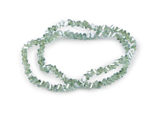Sklenené brúsené korálky triangel sa vyznačujú precíznym brúsením, ktoré im dodáva jedinečný lesk a zaujímavý tvar. Vynikajú predovšetkým svojim ligotom. Sú vhodné na precíznu prácu pri tvorbe šperkov. Využijete ich na ketlovanie, do šitých šperkov, na drôtovanie, pamäťové náramky a pod. Sú tiež vhodné na použitie v rôznych hobby projektoch, kde môžu poslúžiť ako detailná ozdoba. 1 vrecko obsahuje cca 130 ks korálikov navlečených na jemnom drôtiku. Návlek je dlhý cca 29 cm. Hmotnosť vrecka aj s korálkami je 18 g.