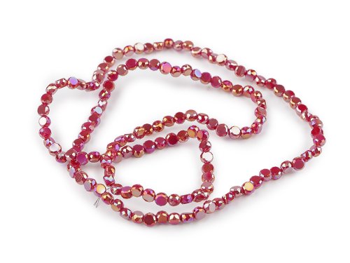 Sklenené korálky brúsené 4 mm ploché, na drôtiku - červená tmavá AB