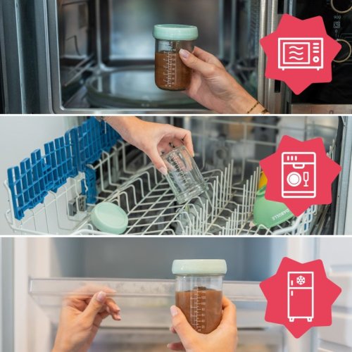 • sklenené misky pre zdravé skladovanie detskej stravy