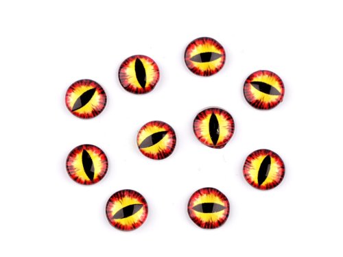 Okrúhle sklenené oči s motívom mačacieho / dračieho oka majú kvalitné spracovanie. Vďaka tvaru vypuklé šošovky obrázok oka krásne vynikne. Využijete ich na tvorbu rôznych postavičiek a zvieratiek. Na ich prilepenie je vhodné použiť lepidlo na lepenie kamienkov. S obľubou sa používajú aj na výrobu bižutérie, ako kabošony sú vhodné na nalepenie do kovového lôžka alebo na obšitie korálkami a rokajlom. Veľmi pôsobivé sú v drôtovaných šperkoch.