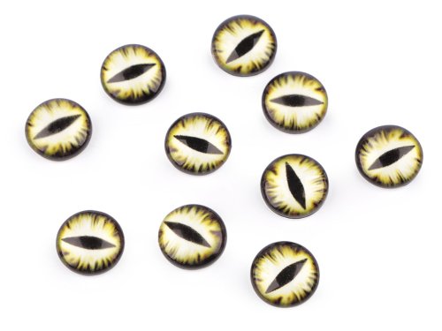Okrúhle sklenené oči s motívom mačacieho / dračieho oka majú kvalitné spracovanie. Vďaka tvaru vypuklé šošovky obrázok oka krásne vynikne. Využijete ich na tvorbu rôznych postavičiek a zvieratiek. Na ich prilepenie je vhodné použiť lepidlo na lepenie kamienkov. S obľubou sa používajú aj na výrobu bižutérie, ako kabošony sú vhodné na nalepenie do kovového lôžka alebo na obšitie korálkami a rokajlom. Veľmi pôsobivé sú v drôtovaných šperkoch.
