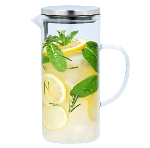 Pitná voda je zdravá, as týmto elegantným skleneným džbánom Alpina bude aj zábavná. Vďaka veku so zabudovaným filtrom môžete do vody ľahko pridať bylinky alebo ovocie, napríklad lístky mäty alebo plátky citróna, a pripraviť si tak osviežujúci nápoj plný chuti.