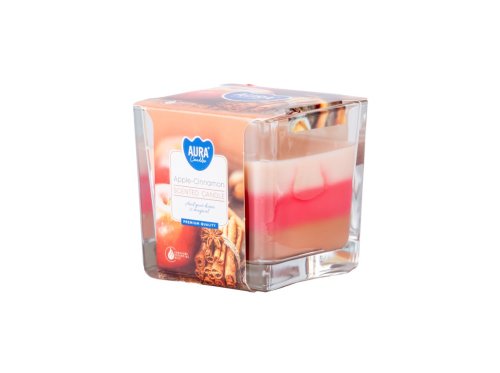 Sklo hranol 80x80 mm ~32h Apple - Cinnamon fruits trojfarebná vonná sviečka