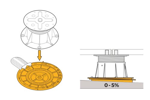 Pomocou korektora U-PH5 je možné upraviť sklon od 0 do 5 % v intervaloch po 0,5 %. Vďaka tomu je ľahké vytvoriť napríklad požadovaný spád terasy alebo dorovnať podlahu na šikmom podklade. Nastavenie a použitie je ľahké, presné, stabilné a trvalé.