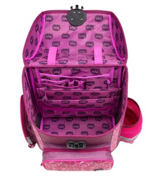 • Vnútri aktovky je priehľadné vrecko s rozvrhom a vnútorný organizér umožňujúci rovnomerné rozloženie hmotnosti.