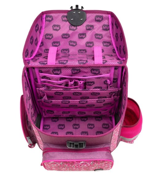 • Školská aktovka s vystuženým telom, vnútorným organizérom a tromi oddelenými vreckami a zapínaním na kvalitnú pracku.