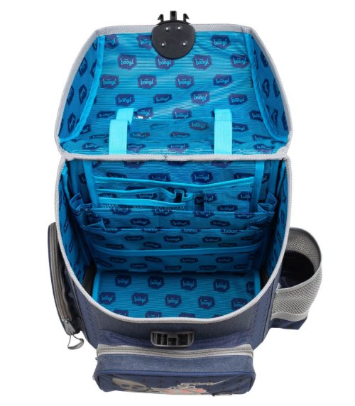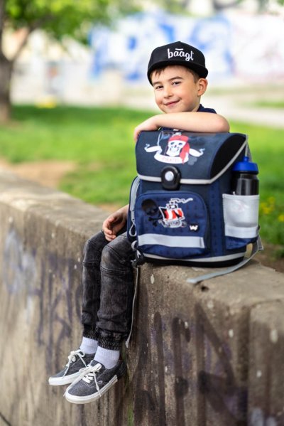 • Školská aktovka s vystuženým telom, vnútorným organizérom a tromi oddelenými vreckami a zapínaním na kvalitnú pracku.
