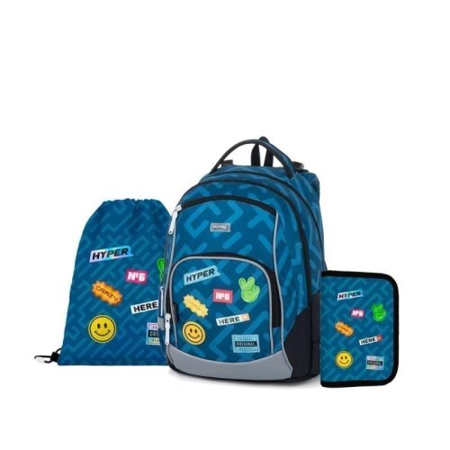 Školský batoh z radu OXY GO vo svojom dizajnovom prevedení zaujme každého chlapca aj dievča. Perfektný tvar batohu ukrýva nielen anatomicky tvarovaný a priedušný chrbát, ale aj možnosť nastaviť si ramenné popruhy pre lepšie pohodlie a komfortnejšie nosenie. Dve vnútorné vrecká ponúkajú dostatok priestoru pre učebnice, zošity aj veci na voľný čas. Pevné dno zabraňuje ako ušpineniu zvonku, tak pretečeniu čohokoľvek, čo sa vyleje vo vnútri. Po stranách nájdete dve väčšie vrecká. Batoh ponúka veľkorysé množstvo najrôznejších vreciek, či už veľkých alebo aj malých. Mysleli sme aj na bezpečnosť vašich detí, preto batohu nechýbajú reflexné prvky. Batoh je ideálny na prvý stupeň 1. – 3. triedu pre deti vysoké od 125 cm. Peračník: Jednoposchodový školský peračník s 2 chlopňami, prázdny obsahuje 25 gumových pútok pre uchytenie písacích potrieb. Na vnútorných chlopniach sú priehľadné fólie na rozvrh hodín. Vrecko: Vrecko na prezuvky. Uzatváranie stiahnutím šnúrok, možnosť nosiť aj na chrbte alebo pripevniť k školskému batohu. Materiál 100% polyester.
