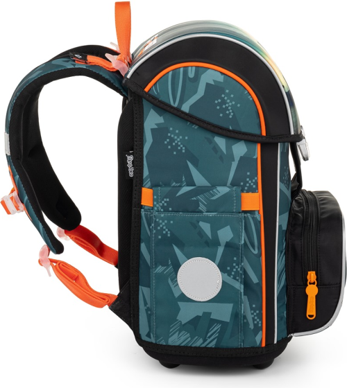Aktovka: Školská aktovka z radu Premium je anatomicky tvarovaná a zaisťuje tak správne usadenie na chrbte. Vystužený chrbát a vnútorná výstuha udržujú stály tvar batohu. Polstrovanie je z príjemného priedušného materiálu, široké mäkčené popruhy sú navrhnuté tak, aby dokonale priľnuli a rovnomerne zaťažili ramená dieťaťa. Aktovka sa skladá z jednej priestrannej komory, kam sa pohodlne zmestia všetky školské pomôcky pre deti v 1. av 2. triede. Dno plecniaka je z pevného materiálu, chráni tým obsah pred prevrhnutím a vysypaním. Zapínanie je na bezpečnostnú pracku. Predné vrecko je určené na desiatu, nechýba rad reflexných prvkov, vďaka ktorým je aktovka viditeľnejšia. Objem: 28 l. Nosnosť: 8 kg. Vrecko: Školské vrecko na cvičky vyrobené z kvalitného materiálu. Vrecko sa uzatvára stiahnutím šnúrok. Vhodný ako do školy, tak na šport a ďalšie voľnočasové aktivity detí. Peračník: Jednoposchodový školský peračník s dvoma chlopňami bez náplne. Gumové pútka na uchytenie písacích potrieb. Na vnútornej chlopni je priehľadná fólia na rozvrh hodín.