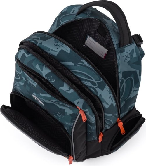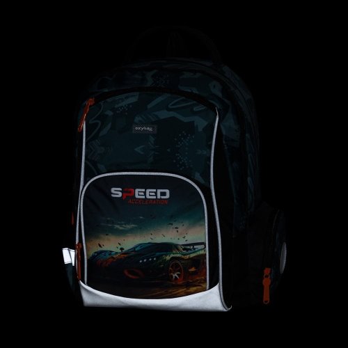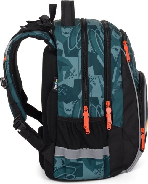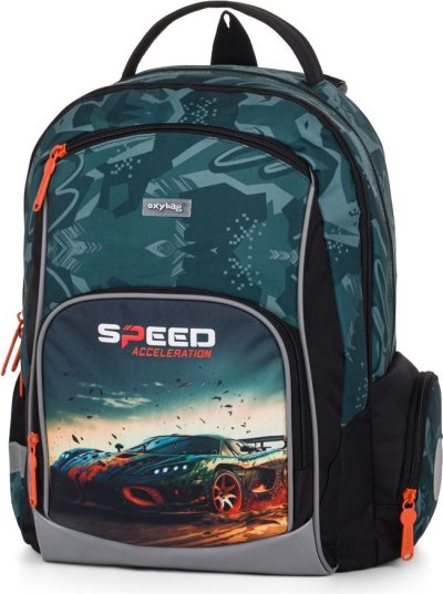 Školský batoh OXY GO zaujme moderným dizajnom a premyslenou funkčnosťou. Má anatomicky tvarovaný, priedušný chrbát a nastaviteľné ramenné popruhy pre pohodlné nosenie. Pridané háčiky umožňujú uchytenie dlhých popruhov. Vnútorné vrecká ponúkajú dostatok miesta na učebnice, zošity aj ďalšie potreby, pevné nepremokavé dno chráni obsah pred ušpinením a pretečením. Bočné vrecká, jedno na zips a jedno otvorené, slúži napr. na fľašu. Reflexné prvky zaisťujú bezpečnosť. Batoh je ideálny pre deti od 1. do 3. triedy vysokej od 125 cm. Dĺžka chrbtového panelu je 39 cm, objem 22 l, hmotnosť 930 g, nosnosť 8 kg. Vrecko: Praktické na cvičky alebo voľnočasové aktivity, uzatvára sa šnúrkami. Peračník: Jednoposchodový s dvoma chlopňami, pútka na písacie potreby a priehľadná fólia na rozvrh hodín.