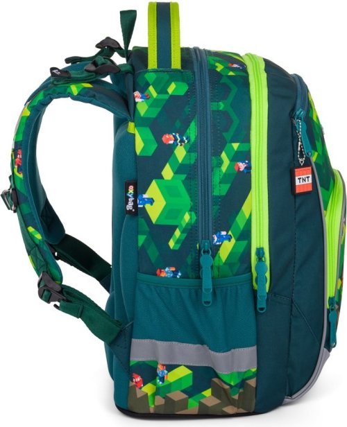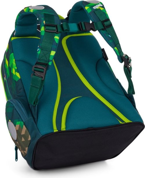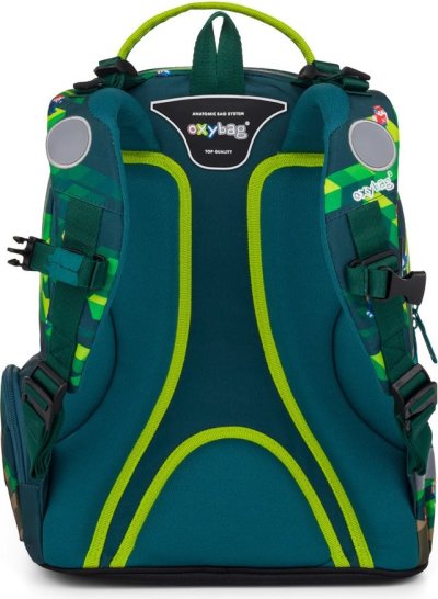 Školský batoh OXY GO zaujme moderným dizajnom a premyslenou funkčnosťou. Má anatomicky tvarovaný, priedušný chrbát a nastaviteľné ramenné popruhy pre pohodlné nosenie. Pridané háčiky umožňujú uchytenie dlhých popruhov. Vnútorné vrecká ponúkajú dostatok miesta na učebnice, zošity aj ďalšie potreby, pevné nepremokavé dno chráni obsah pred ušpinením a pretečením. Bočné vrecká, jedno na zips a jedno otvorené, slúži napr. na fľašu. Reflexné prvky zaisťujú bezpečnosť. Batoh je ideálny pre deti od 1. do 3. triedy vysokej od 125 cm. Dĺžka chrbtového panelu je 39 cm, objem 22 l, hmotnosť 930 g, nosnosť 8 kg. Vrecko: Praktické na cvičky alebo voľnočasové aktivity, uzatvára sa šnúrkami. Peračník: Jednoposchodový s dvoma chlopňami, pútka na písacie potreby a priehľadná fólia na rozvrh hodín.