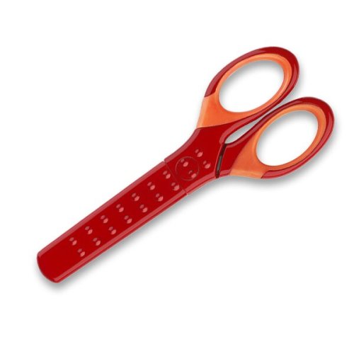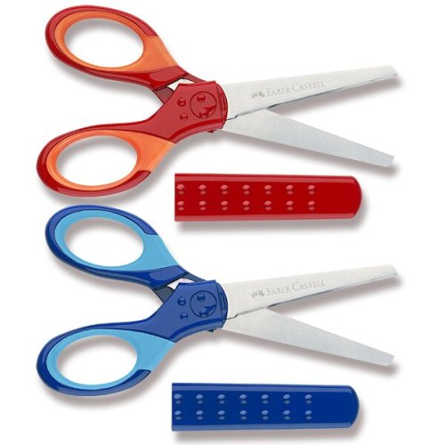 nožnice pre školský vek majú ergonomicky prispôsobenú mäkkú oblasť úchopu, * snímateľný ochranný plastový kryt, * vhodné pre pravákov aj ľavákov, * okrúhle zakončenie